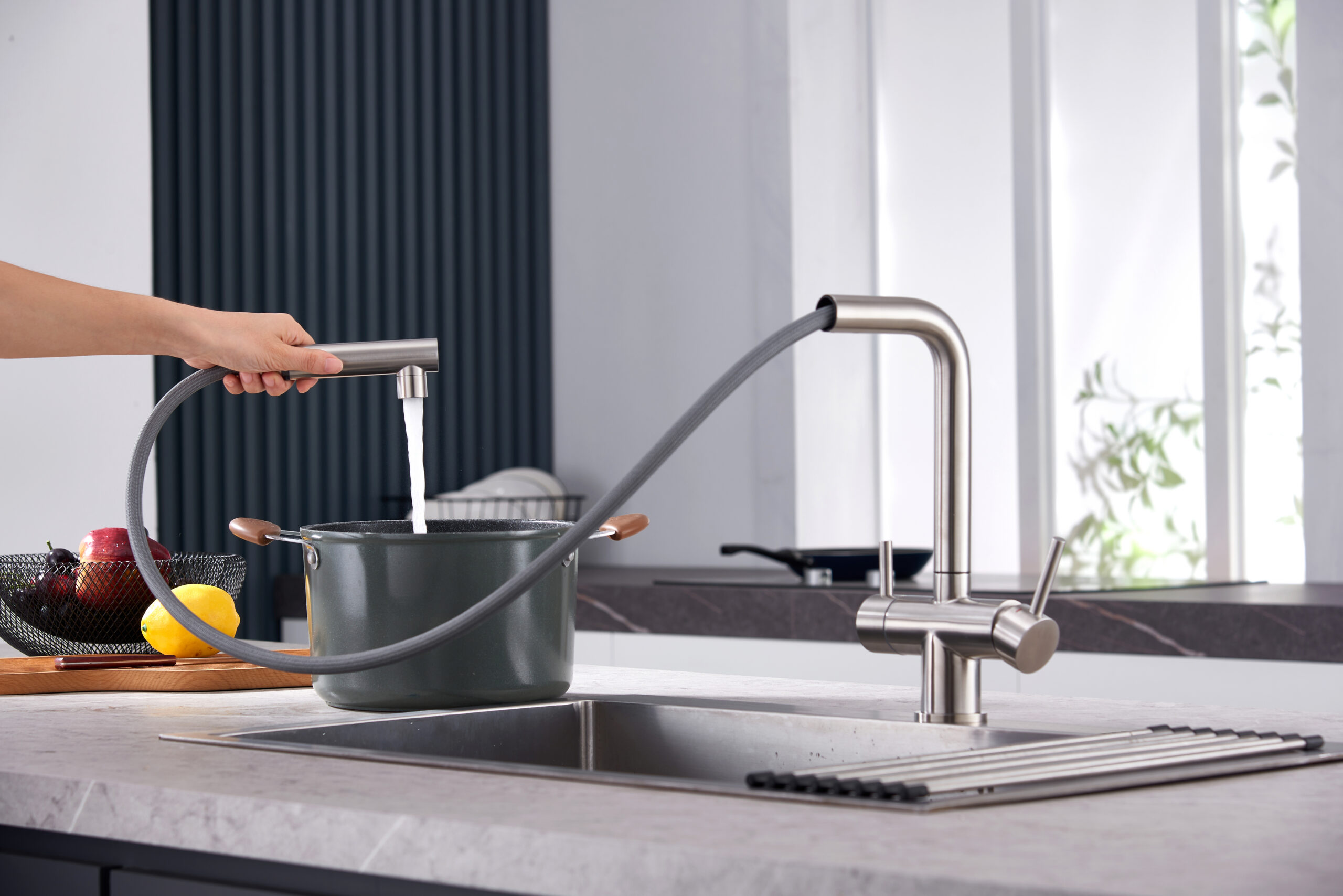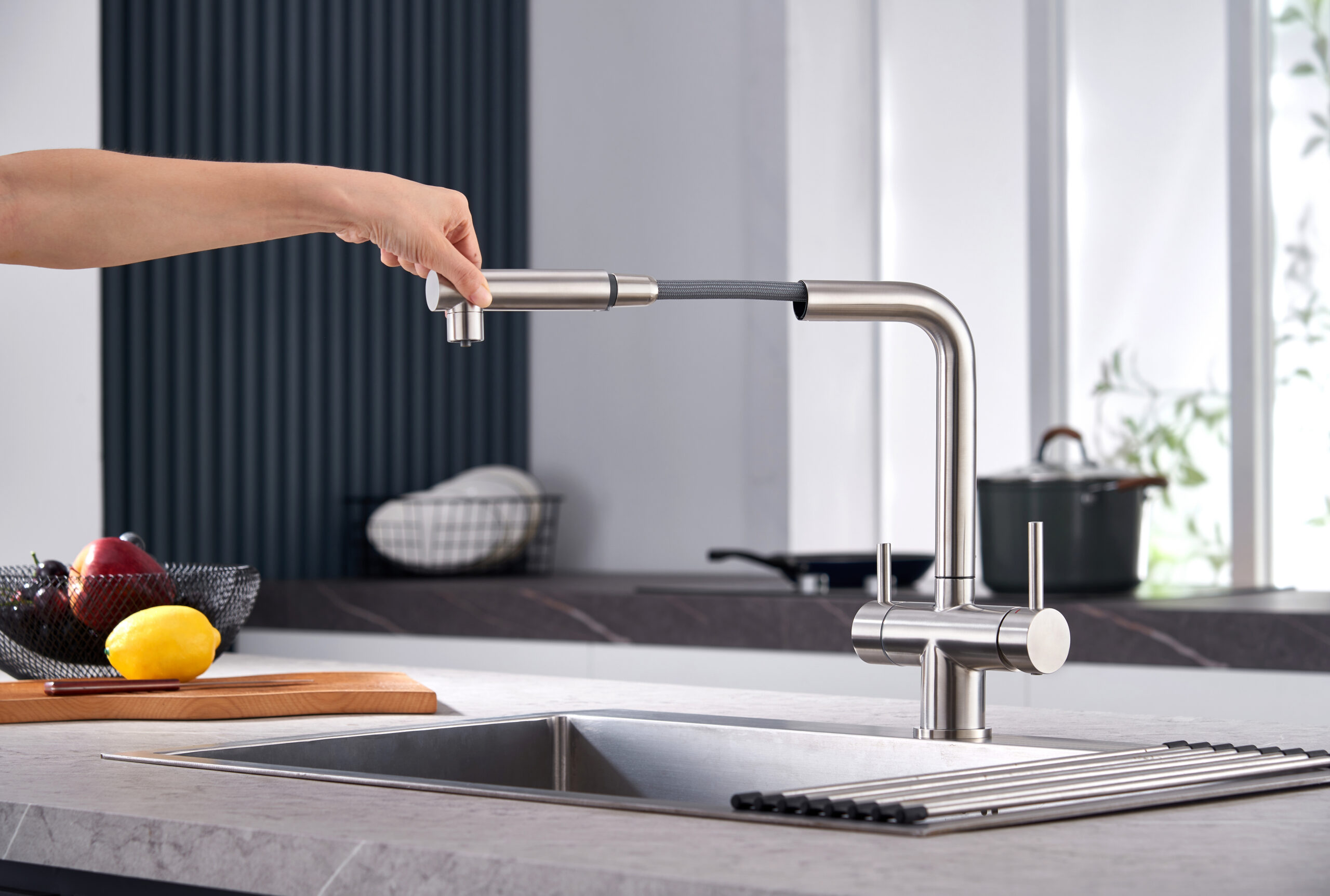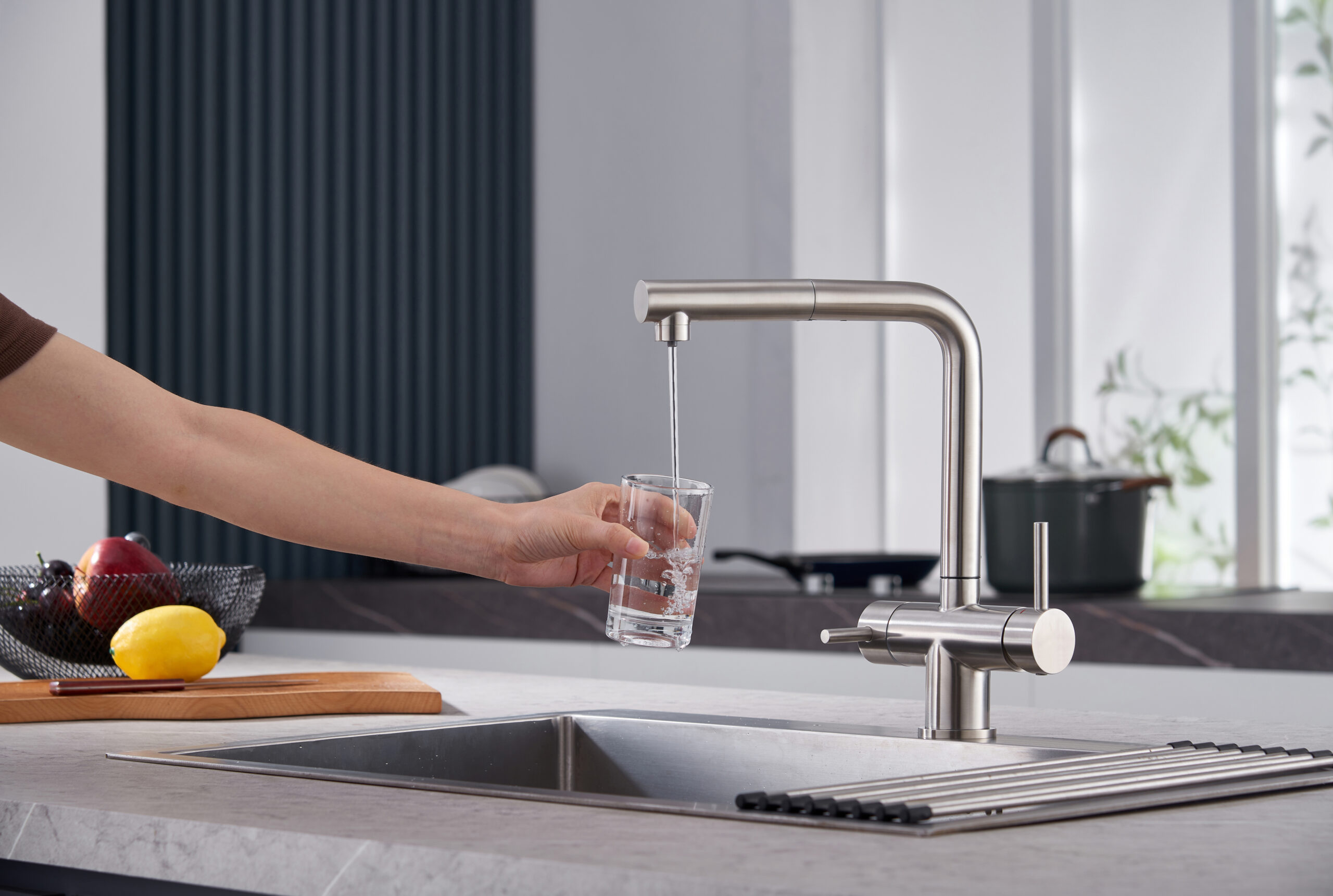 Ob Kochen, Reinigen oder einfach ein Glas frisches Wasser genießen, dieser 3-Wege- Wasserhahn macht es Ihnen leicht, jeden Moment bewusst zu erleben.